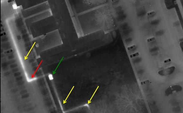 Aerial infrared can help monitor the steam distribution system so that those charged with the task, can manage the assets better. Checking the boilers, lines and steam traps inside buildings and inside steam tunnels are jobs best accomplished on the ground, but the distribution and condensate return lines are best surveyed from the air. Thermal contrast between active lines and the surrounding ground are usually good depending on the depth of the line, temperature, flow and the materials covering the lines. The entire system can be flown, a mosaic thermal image produced and the areas with suspected problems can be pinpointed and documented. On-ground, hand-held IR surveys on all but very small areas within a system are time-consuming, labor intensive and produce small field of vision imagery and/or paint on the ground. Owing to recent developments in infrared technology and the availability of high thermal sensitivity/high spatial resolution (large format) thermal imaging systems mounted on an aerial platform, the on-ground survey has become outdated.